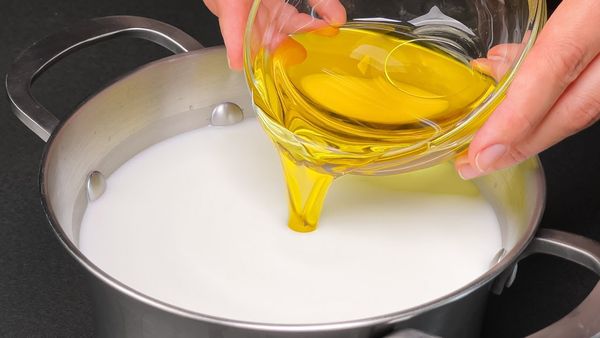 - Add the Olive Oil: Stir in 2 tablespoons of olive oil while the milk is warm, ensuring thorough mixing.