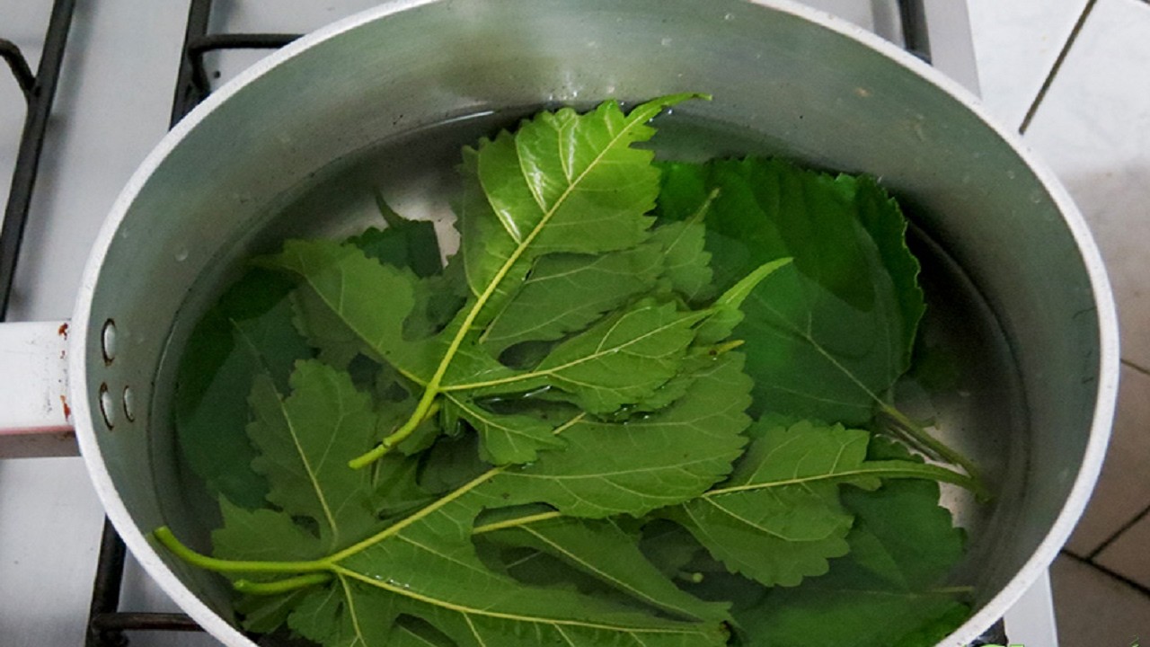 - Pour hot (not boiling) water over the leaves.