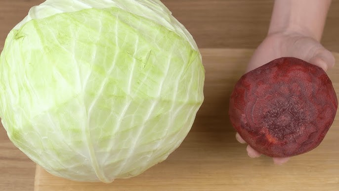 1. In a large bowl, combine the grated beetroot, carrot, and shredded cabbage.