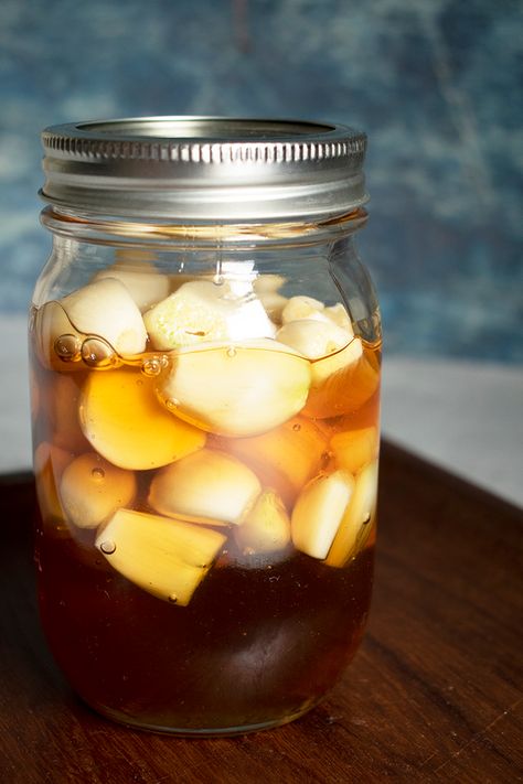 - Pour honey over the garlic, ensuring the cloves are fully submerged.